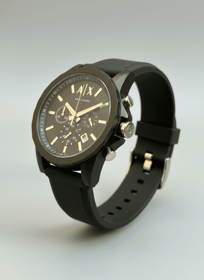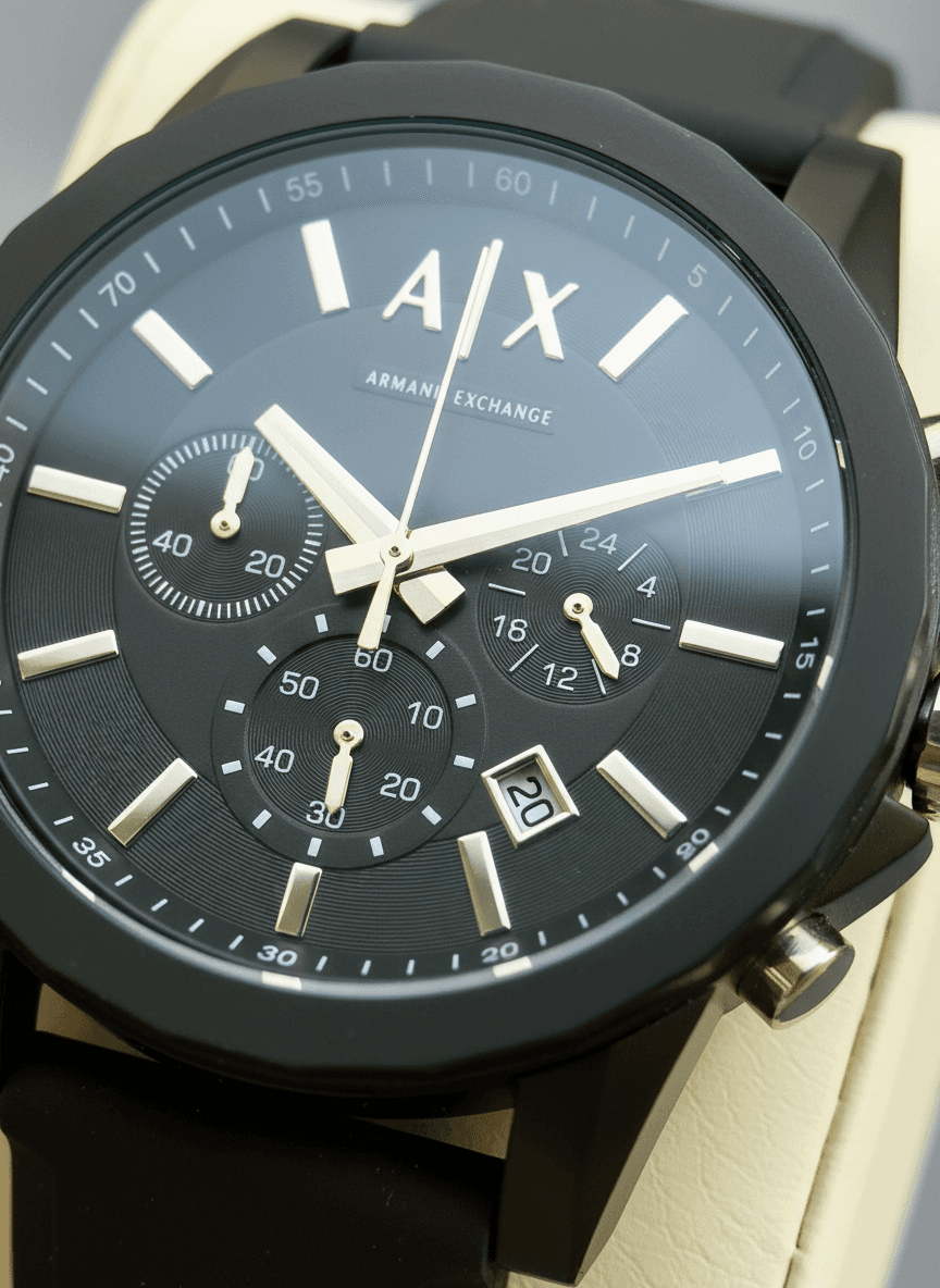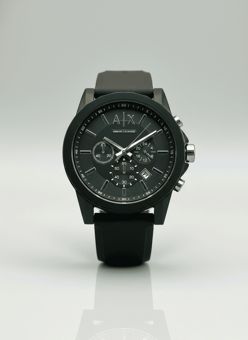 “Armani Exchange Outerbanks chronograph in all-black looks bold, sporty, and effortlessly premium on the wrist.” A|X Model:- Outerbanks (AX1326) Features:-👇 * Quartz movement * All chronographs working * Date window * Rubber strap * Sa back & Lock Price:- ₹1699/-+ Free Shipping All Over India. All Live Photo’s Style: Sporty & casual yet premium design