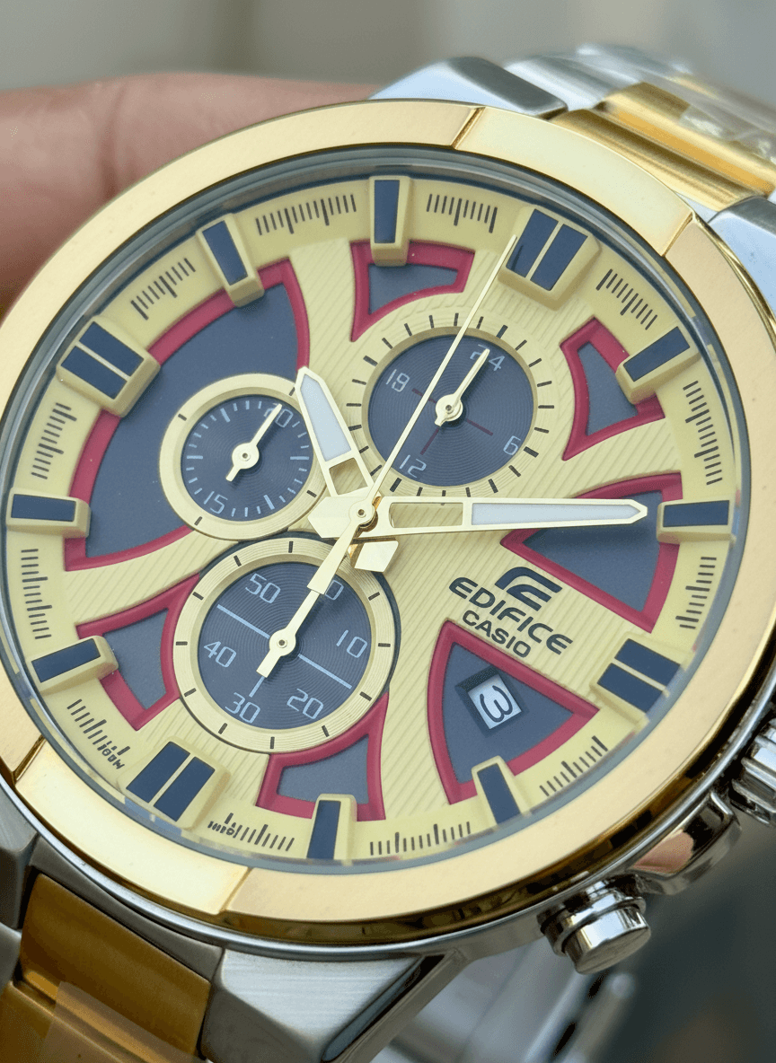 A perfect blend of sporty precision and elegant design, this Edifice watch looks powerful, premium, and timeless in one glance. EDIFICE CASIO Japan Quality 💯 Features:-👇 * Quartz movement * All chronographs working * Date window * Luminous hands * Premium Build * Ss back & Double pressing lock Price:- ₹2199/-+ Free Shipping All Over India. All Live Photo’s Bold, modern Edifice design suitable for casual and formal wear