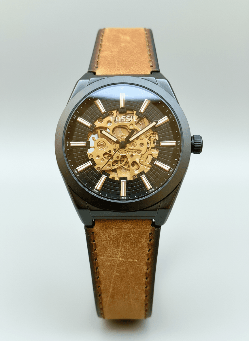 A stunning blend of vintage leather charm and modern skeleton-dial elegance. FOSSIL Vintage Features:-👇 * Automatic machine * Skeleton dial * Luminous h&m * Metal case * Vintage leather stitch strap * Ss back bezel & Lock Price:- ₹1999/-+ Free Shipping All Over India. All live photos Classic + modern fusion design (formal and casual both).