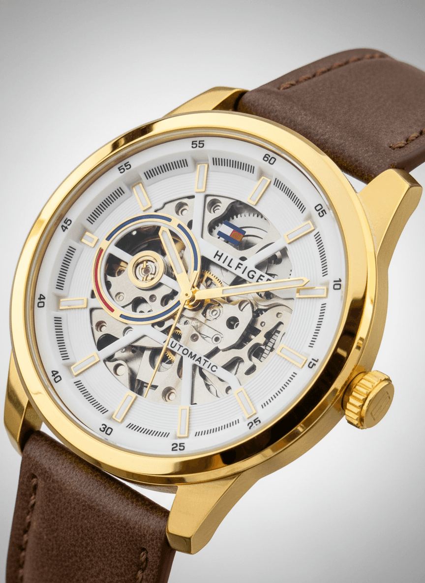 A perfect blend of luxury and sportiness, this automatic watch stands out with its bold case, skeleton dial, and Leather strap. HILFIGER Open Heart ❤️ Features:-👇 * Automatic machine * Luminous hands * Metal case * Leather stitch strap * Ss back bezel & Lock Price:- ₹1999/-+ Free Shipping All Over India. All live Photo's