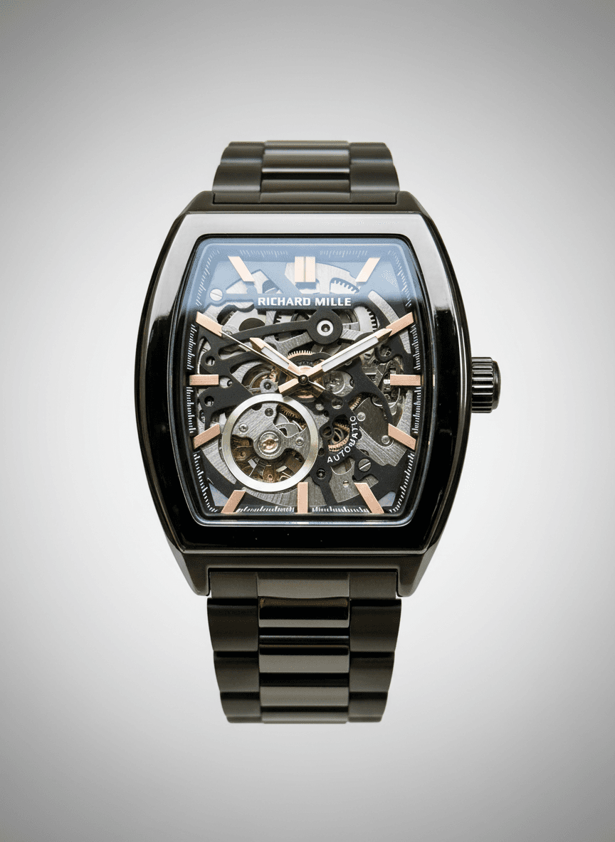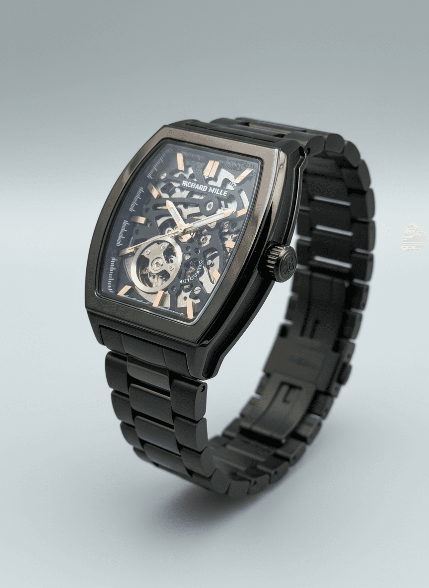 A bold, skeleton-dial masterpiece that perfectly blends luxury engineering with striking modern design. Richard Mille Features:-👇 * Automatic machine * Skeleton dail * Luminous hands * Open back Ss bezel * Premium build * ss Bfly lock Price:- ₹2189/-+ Free Shipping All Over India. All Live Photo’s